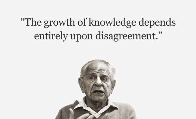 “We can now see that the growth of knowledge depends entirely upon disagreement. For science grows through a process of mutual criticism, and thus through the elimination of error. It is through disagreement—through the clash of opinions and the critical discussion of alternatives—that we approach the truth. This is why I have always emphasized the importance of bold conjectures and their critical testing: without disagreement there can be no criticism, and without criticism there can be no progress.”